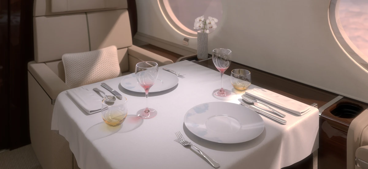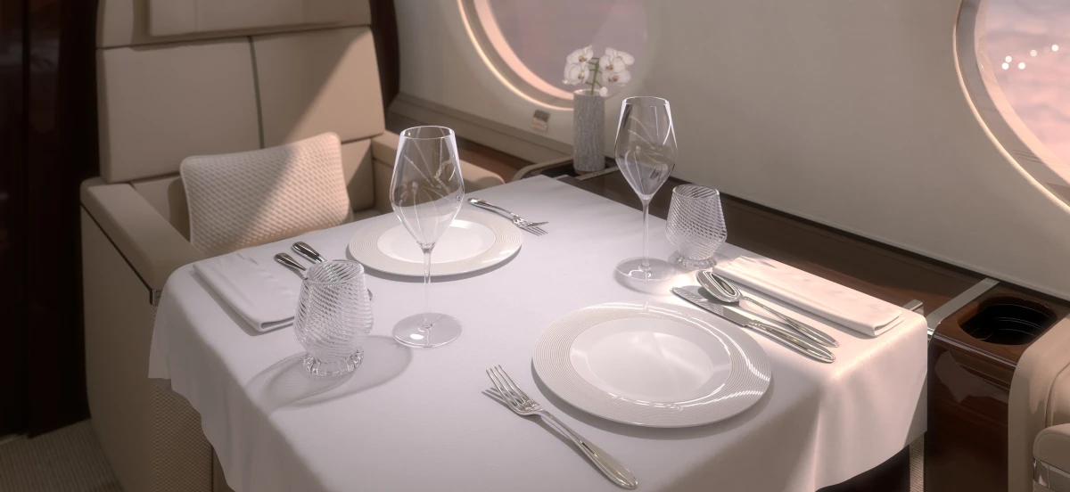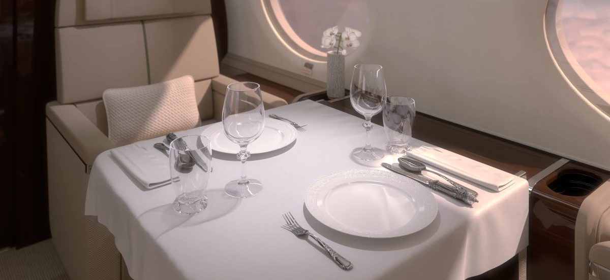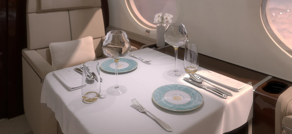 We curate and design fine tableware, flatware, and glassware exclusively for the business jet community, ensuring that every meal served in the sky is presented with timeless elegance and impeccable functionality. We also source linens, throws, pillows, trays and many more products to make your flying experience as comfortable as possible.